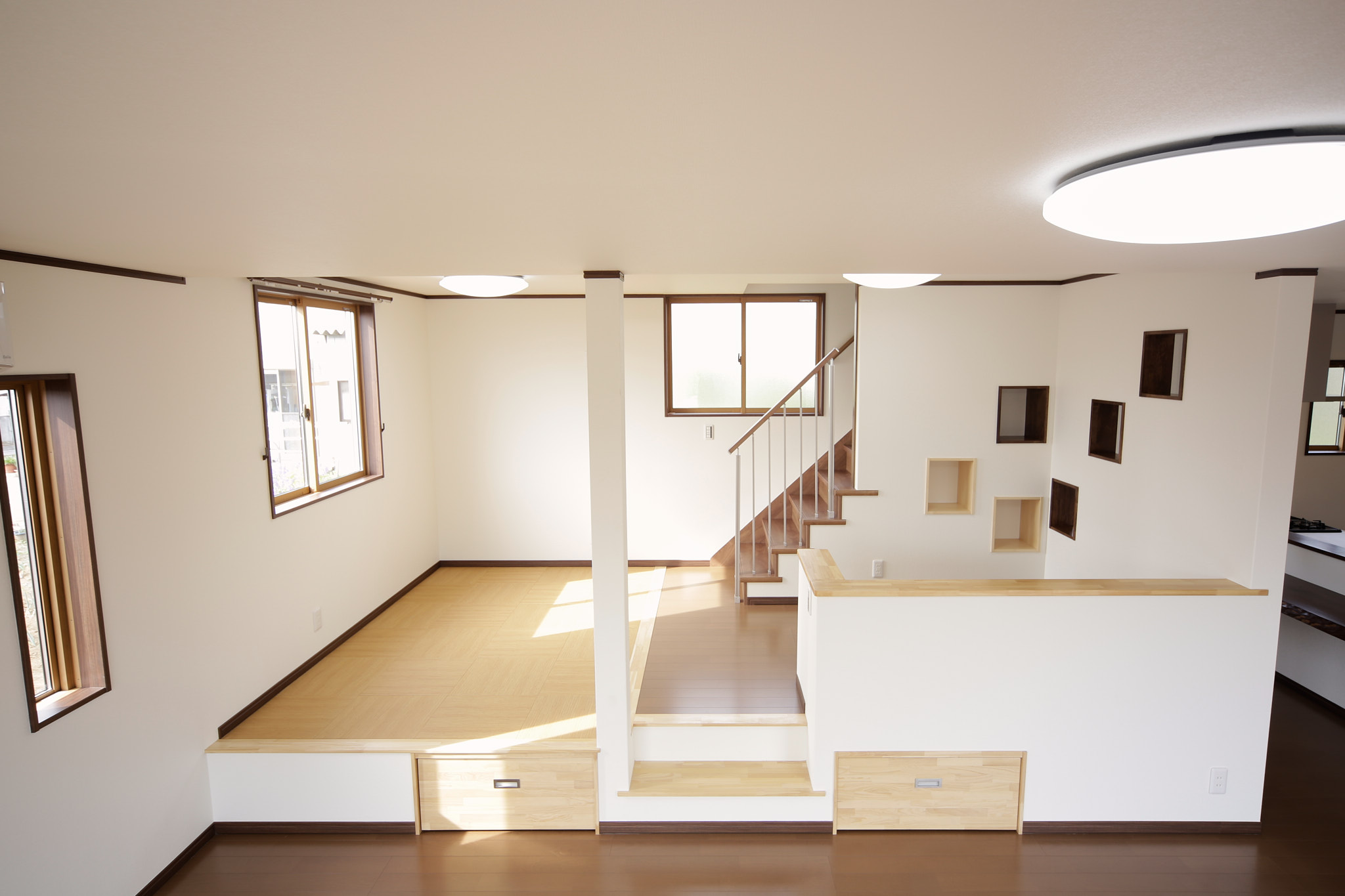 収納力アップや様々に使えて便利な小上がり。お子様たちも遊べて嬉しい小上がりを作れるのは注文住宅ならではです。